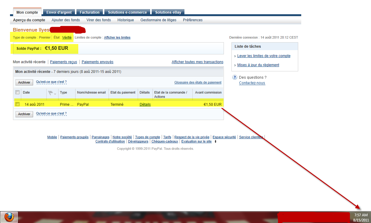 الأن ، سيتم إضافة 1.5 يورو لحسابك كهدية و بذلك تتأكد أنه قد تم تفعيل حسابك + أنه يستطيع إستلام الأموال من الخارج